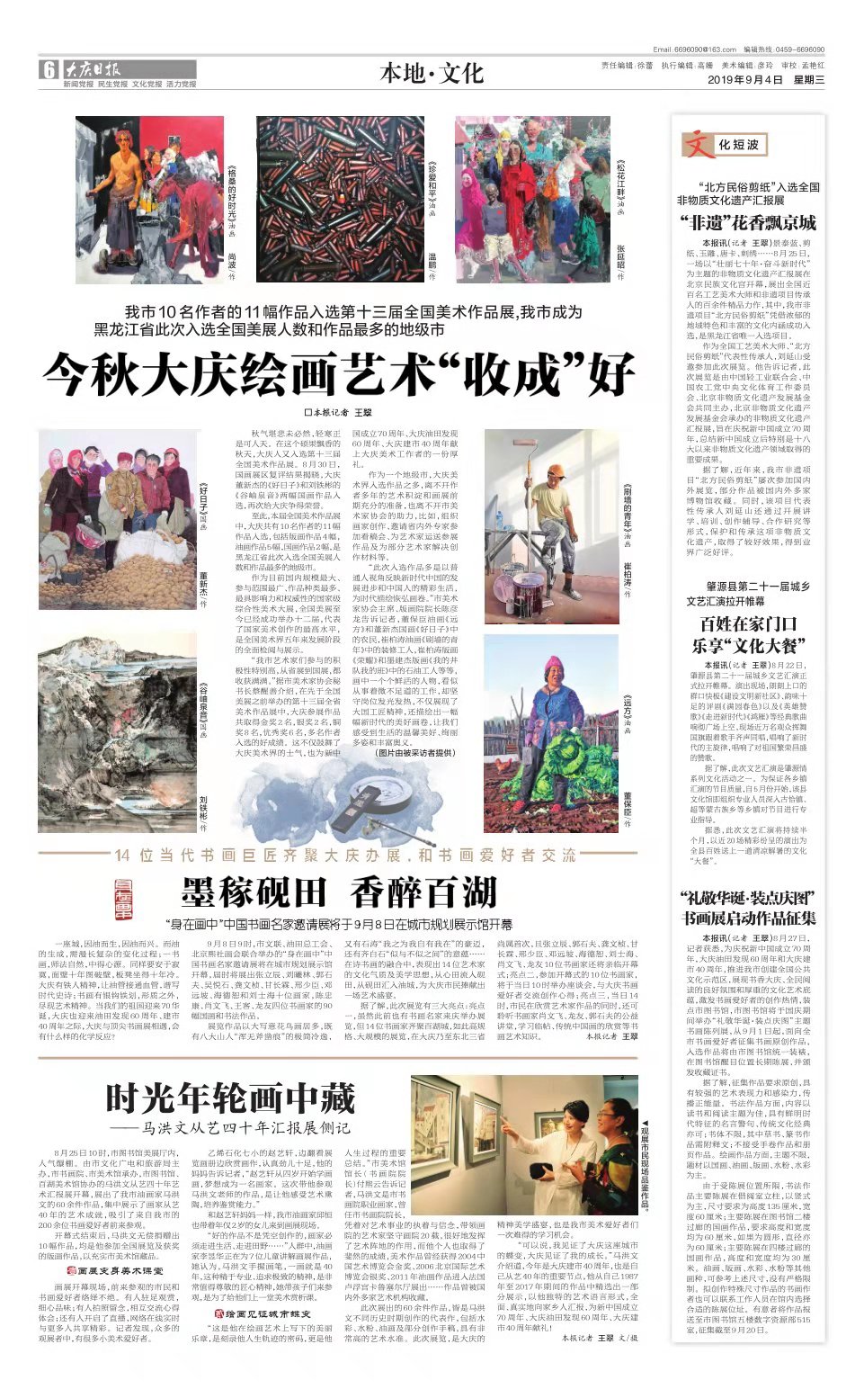 近日,第十三届全国美展作品评选揭晓,大庆市有10名作者的11件作品入选,是黑龙江省此次入选全国美展人数和作品最多的地级市。伟德体育董新杰教授的中国画作品《好日子》、董保臣副教授的油画作品《远方》入选,是公司绘画作品首次入选五年一届的全国美展,实现公司绘画创作历史的新突破。
