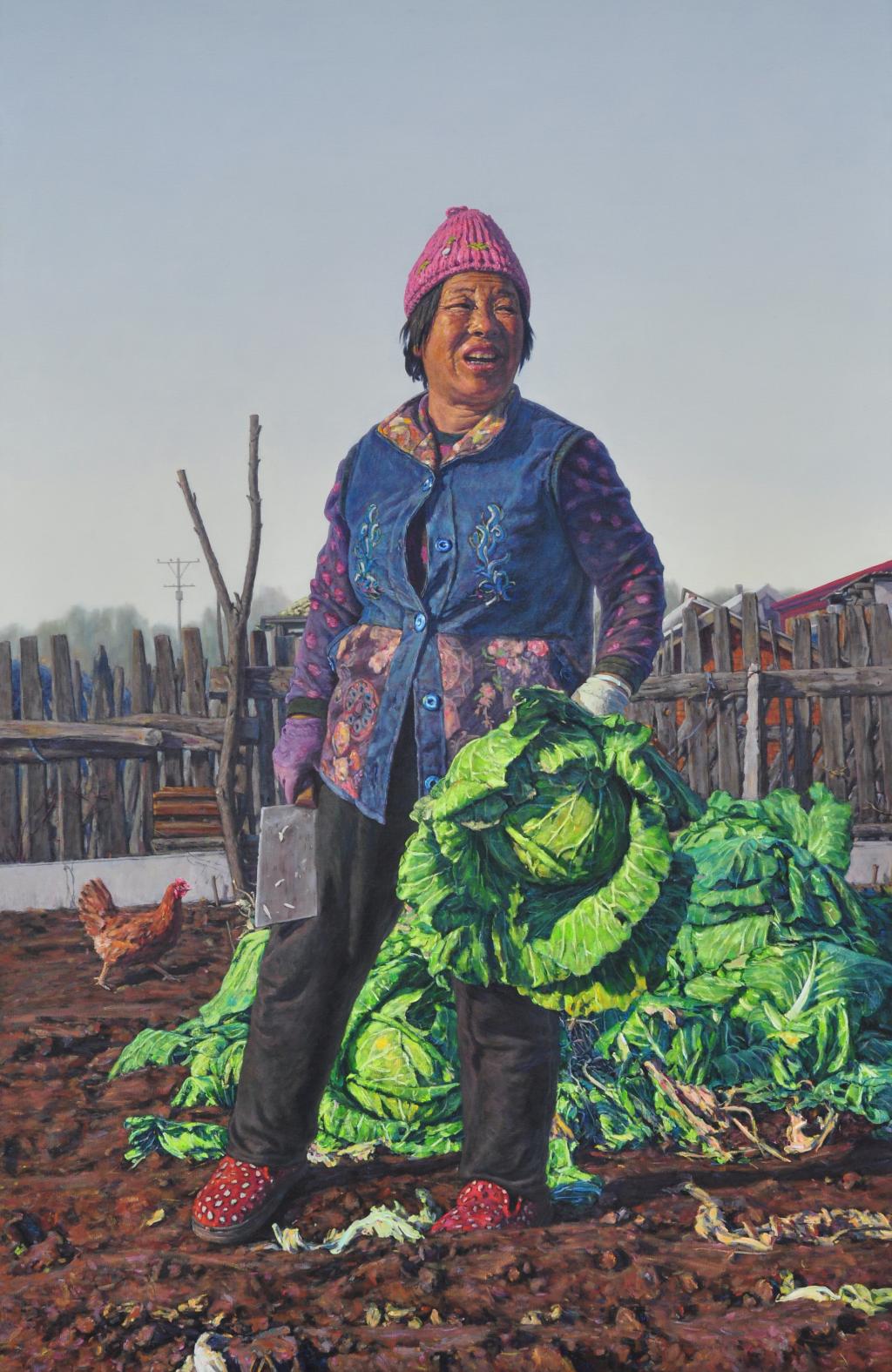 全国美术作品展览创办于1949年,由中华人民共和国文化和旅游部、中国文学艺术联合会、中国美术家协会主办,每五年举办一次,是我国规模最大、参与范围最广、美术作品种类最多、最具影响力和权威的国家级综合性美术大展。对各个省份美术事业的发展而言,在此展中入选和获奖作品数量的多少成为衡量其美术创作水平的重要标尺,也是对地方美术工作的一次重要检阅。董新杰、董保臣的作品入选,离不开作者多年的艺术积淀和画展前期充分的准备,两位作者在2018年底开始搜集素材、绘制小稿,经过近一年多的努力,最终完稿。两件作品画幅尺寸都超过2米,创作历程非常艰辛,题材都是以艺术家的视角反映新时代中国的发展进步和中国人的精彩生活,为时代描绘出一幅幅新时代的美好画卷。画面呈现的是黑龙江农村秋日田地里,农妇收获的喜人场景,充分展现出新农民的时代风貌和生活的欢欣与富饶,表现出东北农妇乐观豁达与吃苦耐劳的坚毅性格,讴歌了新时代农民的美好生活。