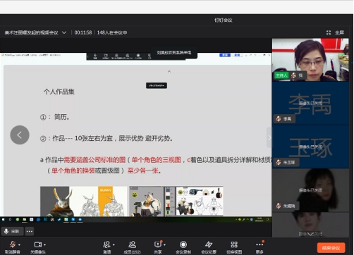 为全面贯彻落实党中央、国务院和省委省政府、省教育厅关于加强高校毕业生就业工作的决策部署,推动落实公司就业工作,2022年4月11日晚六点半,伟德体育通过钉钉会议召开2022届毕业生就业推进会第二次会议。全体2022届毕业生176人参加会议,经理孙大力、党总支副书记孙琦、实践教学副经理陆津和各系主任出席会议。推进会由由员工工作办公室主任汪丽媛主持,数字传媒系教师宋琳、绘画系教师刘娜娜主讲。