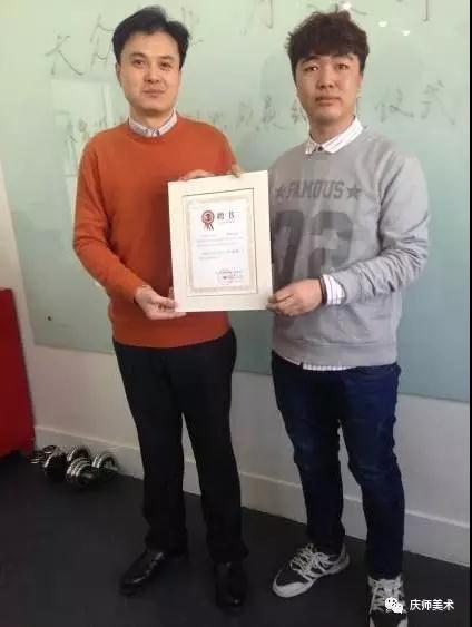刘:具体措施实行三步骤。第一,成为实训学员,接触实战项目;第二,成为准合伙人,通过“综合测评表”筛选学员,并依据参与项目的情况给与奖励,如2016年3月15日 大象设计实训导师贾正超总经理为2013级环境设计曹帅(图14)、环境设计系刘岩主任为蔡春娃颁发准合伙人聘书(图15),最终成为合伙人,毕业后与大象设计持有共同理想、共同目标,并给与股份及参与经营。2017年大象设计实训导师贾正超总经理为2011级环境设计员工李鹏辉颁发合伙人聘书,成为第一位合伙人。(图16)