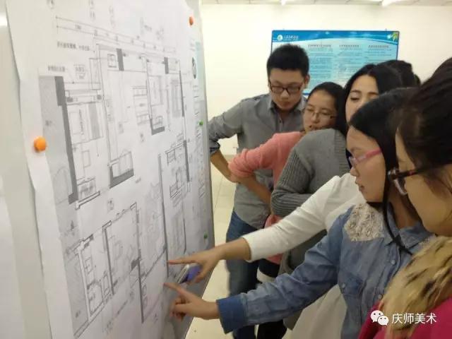 刘:说到教学思路,主要从我们伟德体育所推行的“项目牵动”教学模式中得到启发,以及亲自讲授《室内空间设计》这门课程的切身体会,发现这门课应以强化应用能力、促进员工解决实际问题的综合能力的提高为教学目标,而非以往对室内空间设计知识的详尽讲授及对虚拟项目进行的模拟训练。因此,我在《室内空间设计》教学方法方面进行大胆的教学改革,以“项目牵动”教学模式为依托,在此基础上进行拓展,提出“实战导入”法并申报了省级教改项目。通过对“实战导入”法的研究应用,首先,摒弃传统的教学模式,打破了校内与校外的界限,课堂由校方教师和企业设计师共同穿插授课,如2015年3月,我在《室内空间设计》教学中邀请知名设计专家黑龙江美图设计有限公司鞠红朝先生和大庆一轩工程设计公司刘逵彦先生,与公司骨干教师联合对2012级艺术设计班员工的办公空间设计作业进行点评、交流互动(图1、图2)。如2015年12月在《室内空间设计》课程结课作业汇报的课堂上,邀请大象设计公司贾正超经理、金马设计公司张国强经理和简佳装设设计工作室孙权经理,与公司骨干教师联合对2013级环境设计班员工的办公空间设计作业进行点评与交流(图3)。