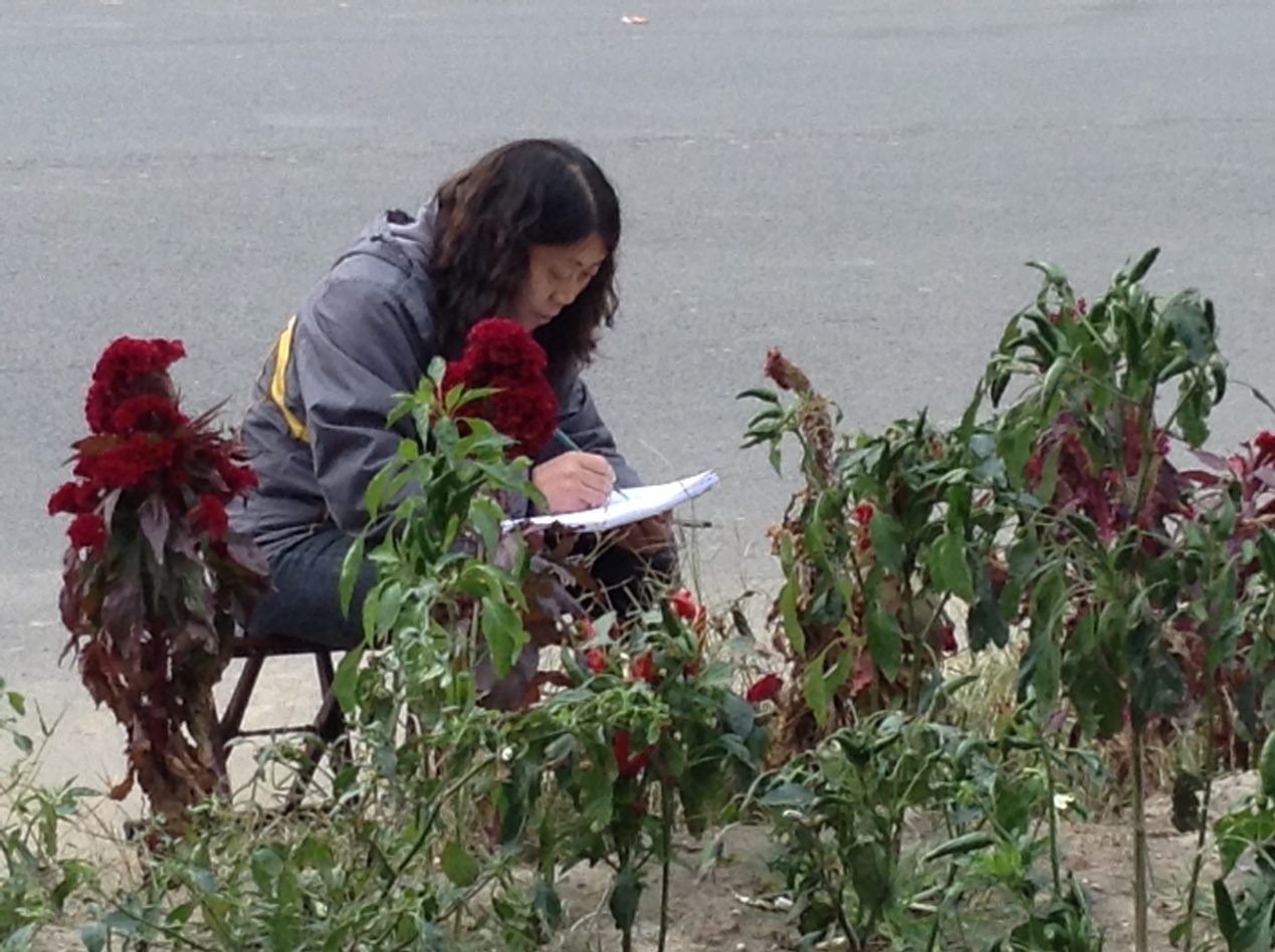 鄂玉梅老师着重给与会的员工和老师介绍了北京中国工笔花鸟画院组织的北京植物园写生,与北京中国工笔花鸟画院画家共同完成承接的花鸟画创作任务,以及自己学习创作过程的收获和体会,并介绍了宋庄书画市场的现状,为中国画专业员工及教师中国画商品画创作打下基础。