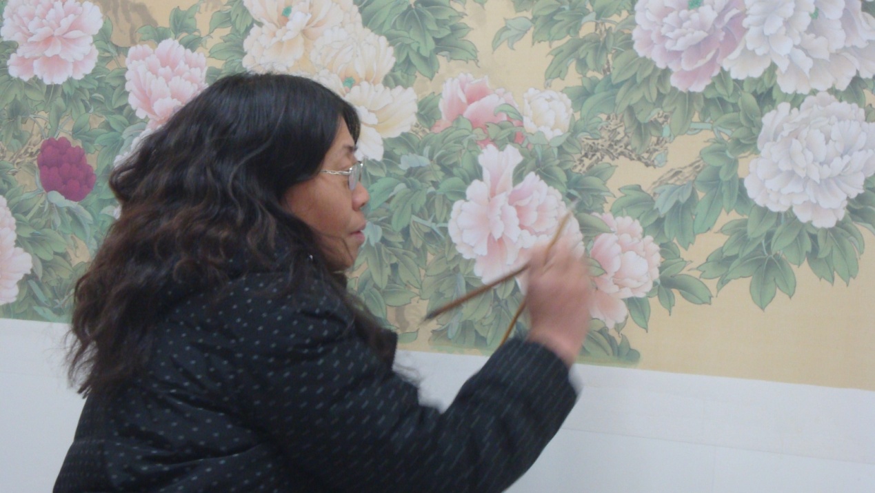 鄂玉梅老师在完成实践单位承接的工笔花鸟壁画作品