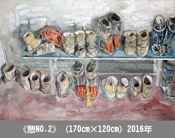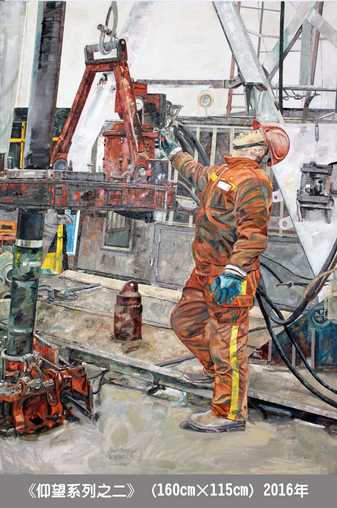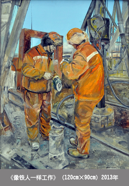 在因井而沸腾的土地上,看着繁忙而有序的工作场景,感受着“用汗水滋润生活,用勤劳讴歌岁月”的石油工人,自己内心总是有一种情感在涌动,是感动,是敬佩,是深思……。以此为素材,有的选取了井队最为常见的工作场景,有的选取井队最为“安静”的一处,记录和表现了井队的艰苦生活,希望给观者带来本应熟悉的“陌生”感,并用油画这一为大家所熟悉的艺术语言来展现大庆特有的地域性文化内涵。