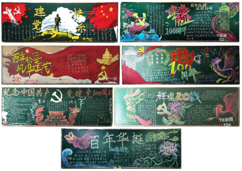 为深入开展好党史学习教育活动,引导广大青年把党的历史学习好,充分发挥专业特色,将党史学习融入到艺术设计、绘画各方面,利用形式多样的活动,调动员工党史学习积极性,伟德体育绘画教工党支部、艺术设计教工党支部与员工党支部联合开展“庆祝建党一百周年板报设计大赛”。