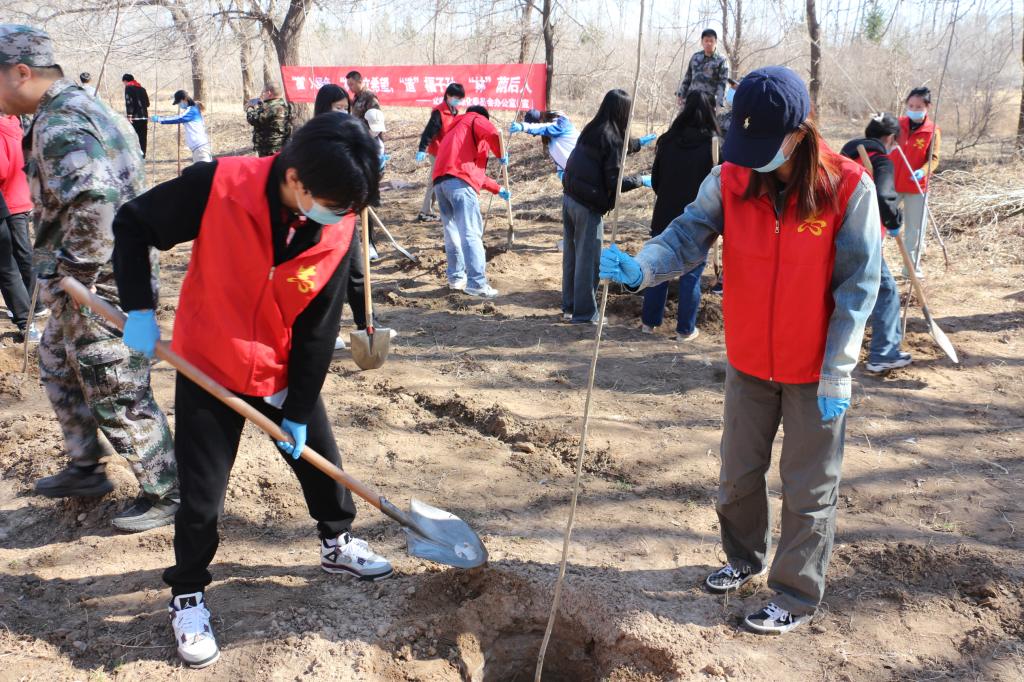 植树现场,同学们认真听取了银浪牧场支部书记关于树的品种的讲解和植树过程中的注意事项之后,便投入到热烈的植树活动中。大家挥锹铲土、扶苗浇水,认真按照植树步骤完成每个工序,克服风大扬沙等困难,经过2个多小时的通力合作,共种下了600棵杨树苗,一棵课小树如同祖国大地上的小战士,为未来守卫祖国绿色春天做出贡献。