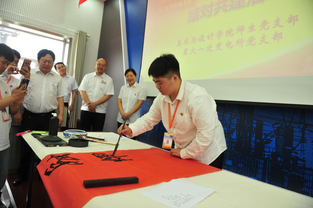随后,举行了党建联合共建活动,先后开展了星火接力站成员入站仪式;双方签署共建协议;为联合共建党支部揭牌;星火一次变电所党支部为公司赠送学习书籍;星火接力站新入站成员代表发言;师生党员重温入党誓词;公司师生现场创作书画作品赠送星火一次变电所等活动,活动的顺利进行,让师生党员感受到了一次精心策划、创新形式、别开生面的党建活动,尤其让首次参观的员工感受到了党组织的温暖,体验到了在党组织的大家庭里进步和成长的快乐。