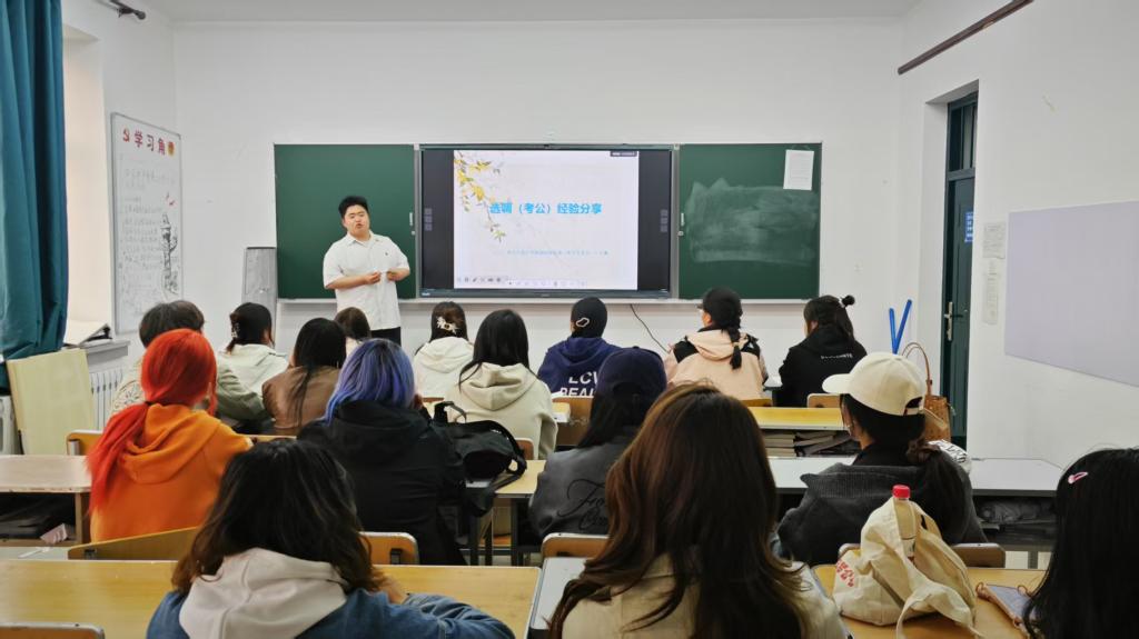 在经验分享交流会上,优秀毕业生党员积极发挥榜样引领作用。王腾同学结合自身经历,详细介绍了考取选调生的备考策略、面试技巧,鼓励学弟学妹扎根基层,服务社会;宋万航同学则围绕考研目标确定、复习计划制定、心态调整等方面,毫无保留地分享了自己成功考取研究生的宝贵经验,为有考研意向的同学提供了清晰的思路和实用的方法。分享结束后,学弟学妹们踊跃提问,毕业生党员耐心解答,现场互动热烈,大家纷纷表示受益匪浅。
