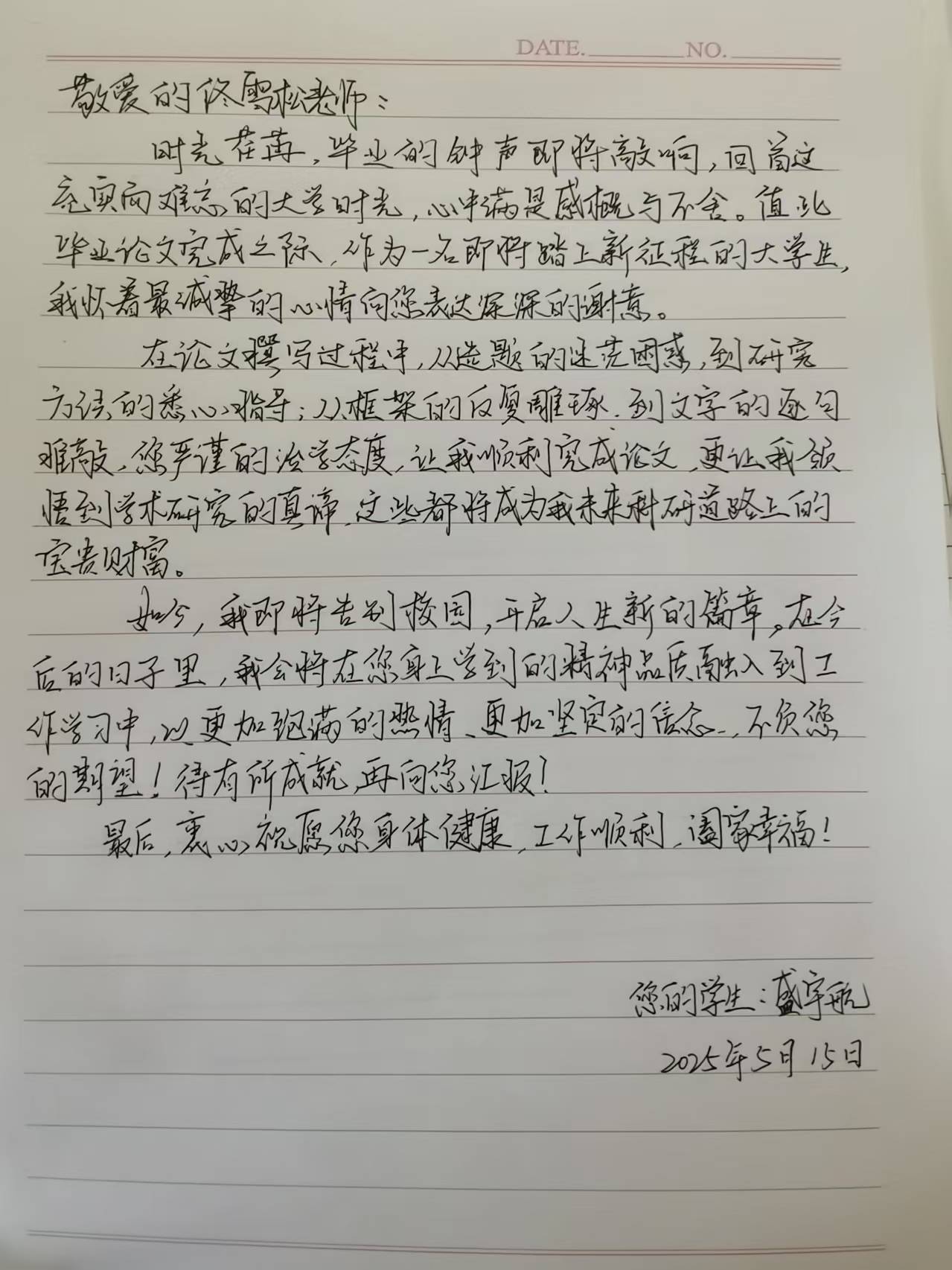 党支部向全体毕业生党员发出“我是党员向我看齐”的号召,鼓励大家在离校前通过实际行动展现党员风采。在“拜访一次恩师”环节中,毕业生党员怀着感恩之心,纷纷回到曾经学习生活的教室、办公室,与恩师面对面交流,分享成长感悟。他们与恩师合影留念,留下饱含深情的感谢信,用真挚的情感表达对老师辛勤培育的感激之情,现场氛围温馨而感人。