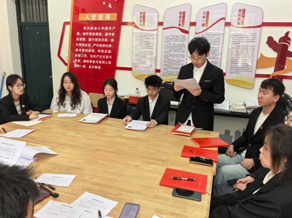 会议伊始,曹腾菲等8名发展对象依次宣读《入党志愿书》,结合个人成长经历、思想转变过程及对党的认识,深刻阐述入党动机,表达为共产主义事业奋斗终身的坚定决心。随后,入党介绍人分别汇报8名同志在培养考察期间的思想动态、学业表现、社会实践及群众联系情况,充分肯定其政治觉悟提升、专业能力进步与服务意识增强,一致同意推荐其加入中国共产党。支部委员会向大会报告政治审查、公示及群众意见反馈结果,确认8名同志政治立场坚定、群众基础良好,符合党员发展标准。