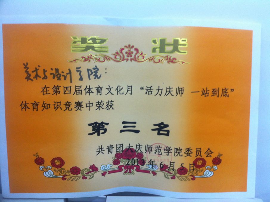 公司员工于2013年6月5日参加Bevictor伟德官网“第三十二届体育知识竞赛”。参加比赛的员工有2011级艺术设计1班马瑞光、李佳玉和2012级艺术设计班李露。他们通过紧张的筹备,以优异的成绩在初赛中脱颖而出,最终在决赛中荣获第三名的好成绩,为公司争得了荣誉。