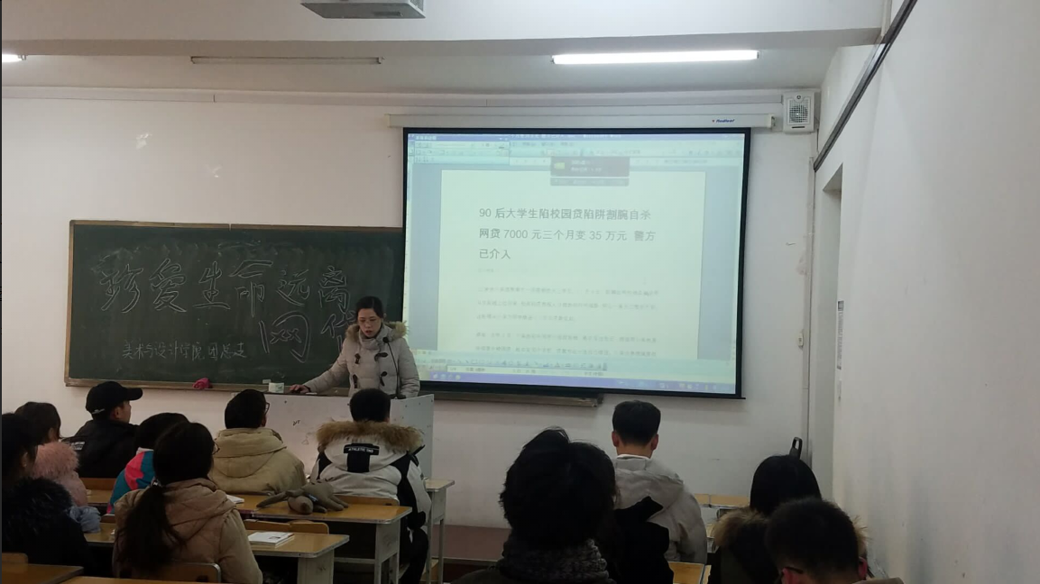 2017年12月7日,伟德体育团总支书记汪丽媛在系楼205,召开“珍爱生命,远离网贷”团活。