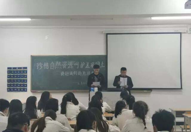 2018年4月25日,下午19:00在205室召开“珍惜自然资源呵护美丽国土——讲好我们的地球故事”主题团活。