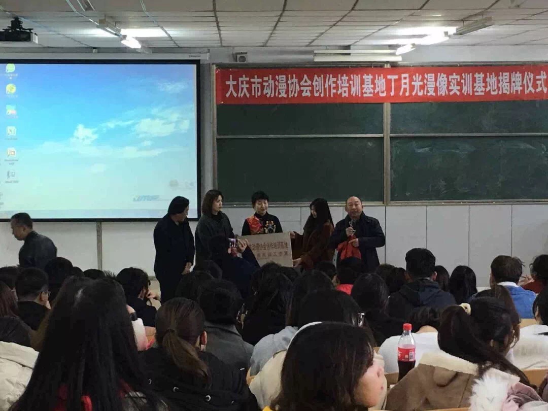 伟德体育于2018年10月31日下午3点在主楼1—1开展了大庆市动漫协会创作培训基地丁月光漫像实训基地揭牌仪式,本次活动由伟德体育孙大力经理主持。伟德体育绘画专业和动画专业员工参加。此次活动旨在加强员工绘画水平能力,加深员工抓住人物主要特征能力。