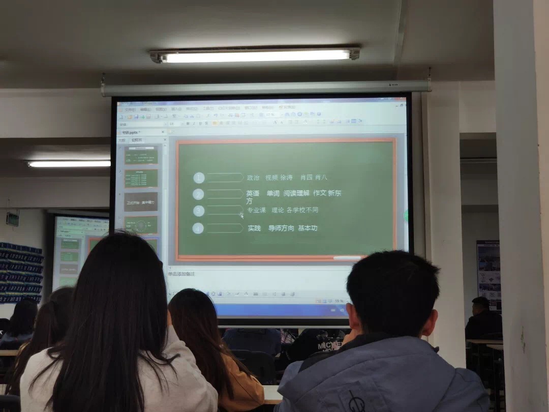 在此次考研交流会中主要交流了考研现象流程和应对策略,首先端正态度,绝对不能“三天打渔,两天晒网”,杜绝拖延。然后信息层面了解清楚在信息方面,同学们需要了解的是:招生人数,招生简章,专业目录,推免人数,初、复试考试科目,初、复试参考书目、专业分数线、拟录取名单。知己知彼才能百战百胜。