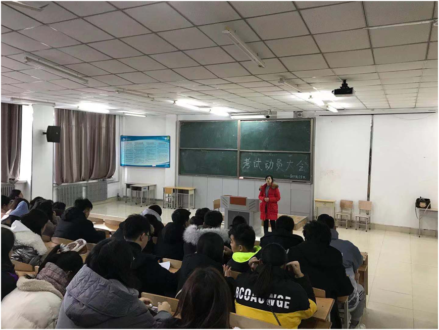 2019年12月25日中午12:10,2018级、2019级全体员工在主楼1-3召开期末考试动员大会。本次会议由员工党支部书记汪丽媛主持。会议主要涉及以下三个部分: