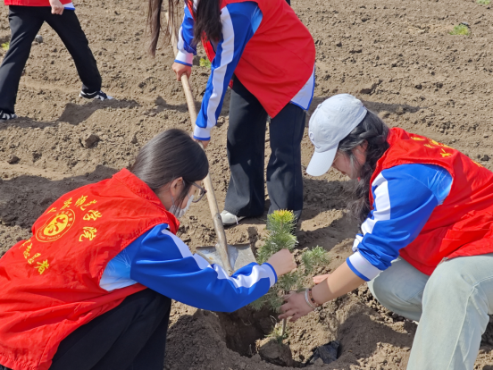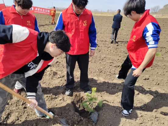 2025年4月26日上午,2024级辅导员苏法睿率40余名员工,赴大庆让胡路区银浪牧场开展义务植树活动,以实际行动践行绿色发展理念,为生态环境建设添砖加瓦。