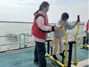 活动当天,志愿者们与孩子们在小鱼特殊公司集合。简短的自我介绍和互动游戏后,孩子们根据身体状况与性格特点被分为若干小组,确保每名孩子都有志愿者全程陪伴。随后,在志愿者和老师的带领下,孩子们沿着明湖步道开启行走之旅。行进过程中,志愿者耐心引导孩子们观察湖面景色,感受自然的美好,同时合理把控行走节奏与距离,全方位保障孩子们的安全与舒适。