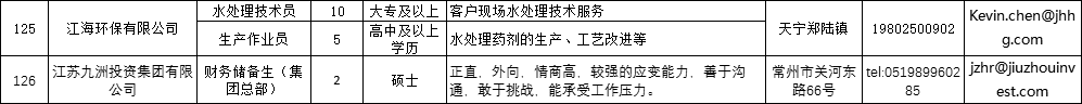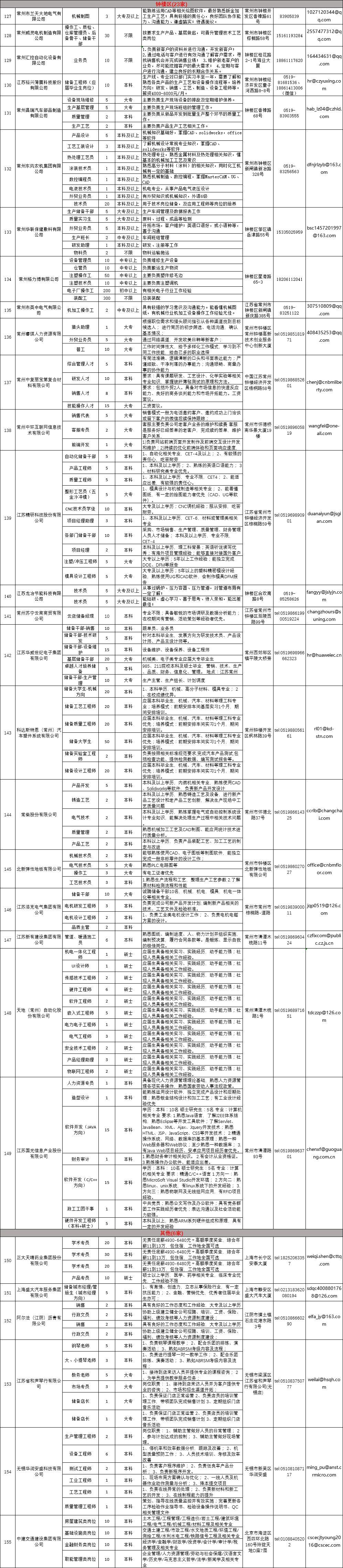 常州市第四批用人单位岗位需求信息