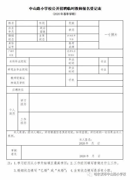 1.个人申请报名。报名采取网上报名方式,报名者需网上填写中山路小学公开招聘临时教师申请表,同时提供教团队格证、学历证、学位证、身份证等相关资质证件照片,将申请表和照片上传到75074050@qq.com。2.因疫情防控原因,公司将采取网上面试的方式进行考核。公司首先依据申报者网上申请表填写的相关信息和提供的相关资质证件进行资格筛选确认;然后公司将通过电话方式告知符合报名条件的申报者公司网上面试的具体时间、内容、形式;而后公司对符合录用条件的申报者进行网上考核面试,进而确定拟录用人员。3.疫情平稳后,拟录用人员进行体检。4.体检合格人员校内公示,公示期为5天。5.与公示无异议者履行签约手续。6.录用人员试用期一个月,试用不合格者将取消聘用资格。
