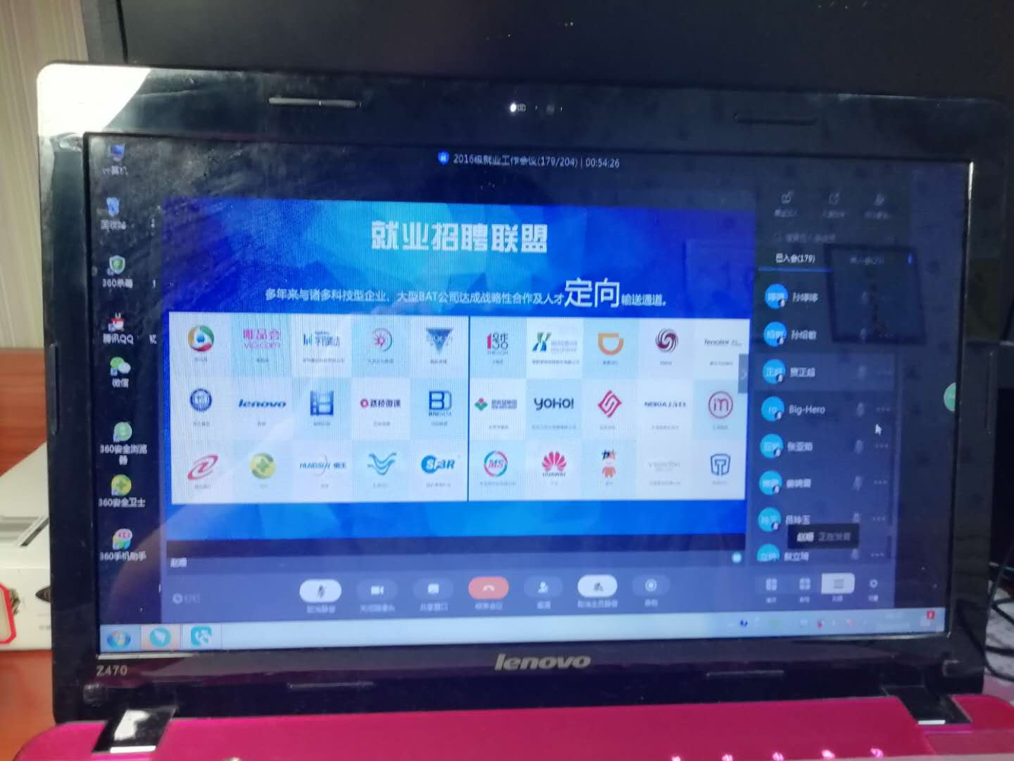 4月24日晚18:30分,公司召开2016级毕业生网络招聘视频会议。会议由员工党支部书记兼毕业班辅导员汪丽媛主持,经理孙大力、党总支副书记孙琦、副经理张立翔、陆津、2016级各班班主任以及全体毕业参加此次网络招聘会。