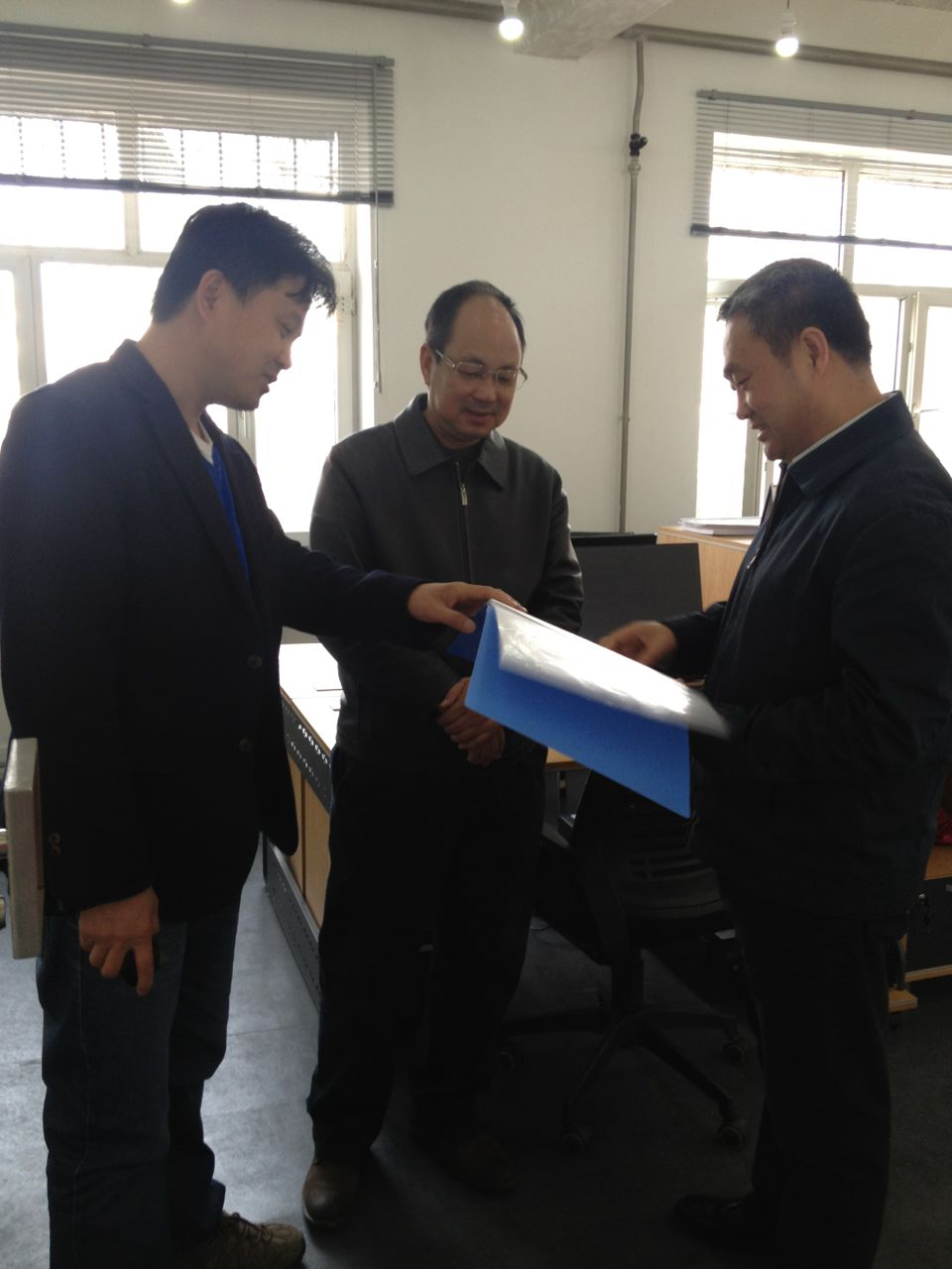 在天邦设计机构实训室,徐董事长听取了负责人对培养机制、培养计划以及带动员工创新创业等方面的介绍,对该实训室的培养工作给予了充分肯定。