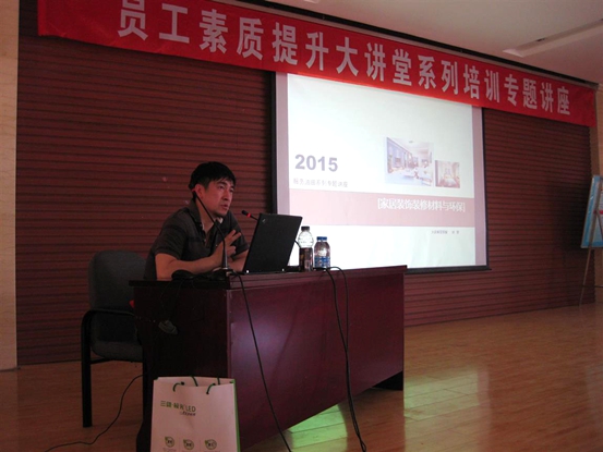伟德体育继2014年在大庆市让胡路区景园社区综合体针对油田广大退休职工开展对外艺术培训服务活动后,又于2015年5月由校地企办组织赴大庆市采油七厂结合油田在职职工需求进行了系列讲座活动。本次活动按原定计划共有5场讲座,主题分别是《家居环境的陈设艺术》、《家居装饰装修材料与环保》、《美术作品与家居生活的关系》、《服饰色彩搭配艺术》和《家庭艺术摄影》。截至发稿前,刘昱晓、刘岩两位老师已经完成了两场讲座,他们凭借着多年教学、科研以及社会实践经验朗朗而谈,从艺术的视角深入浅出且全面的对目前油田职工在家居空间设计、装修过程中普遍存在的现象、出现的问题和解决的方法进行了分析说明,加之列举了大量翔实生动的实例,使得在场听众耳目一新。