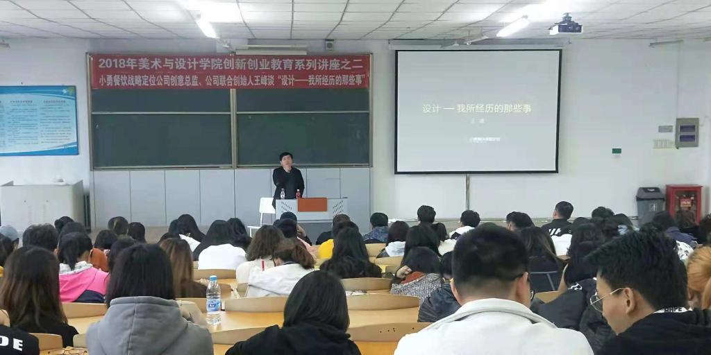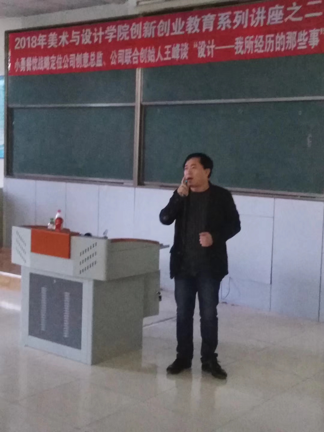 王峰先生现为小勇餐饮战略定位公司创意总监,公司联合创始人,设计从业近22年。2013年以来,在全国成功实施餐饮定位设计案例700余项,餐饮设计作品多次获中国C IDA商业空间设计大奖。讲座中,王峰先生以丰富的设计实战经验,从他的学习、成长经历以及主持实施的设计案例等多个层面进行了讲解和分析。尤其是以多项成功的设计案例,从艺术设计、艺术创意、设计与商业结合以及环境设计与视觉传达设计的巧妙融合等方面进行了深入的剖析,并通过企业和个人成功创业案例启发员工,对员工设计观念的更新、设计理念的拓展和创业精神的培养,具有极大的促进作用。
