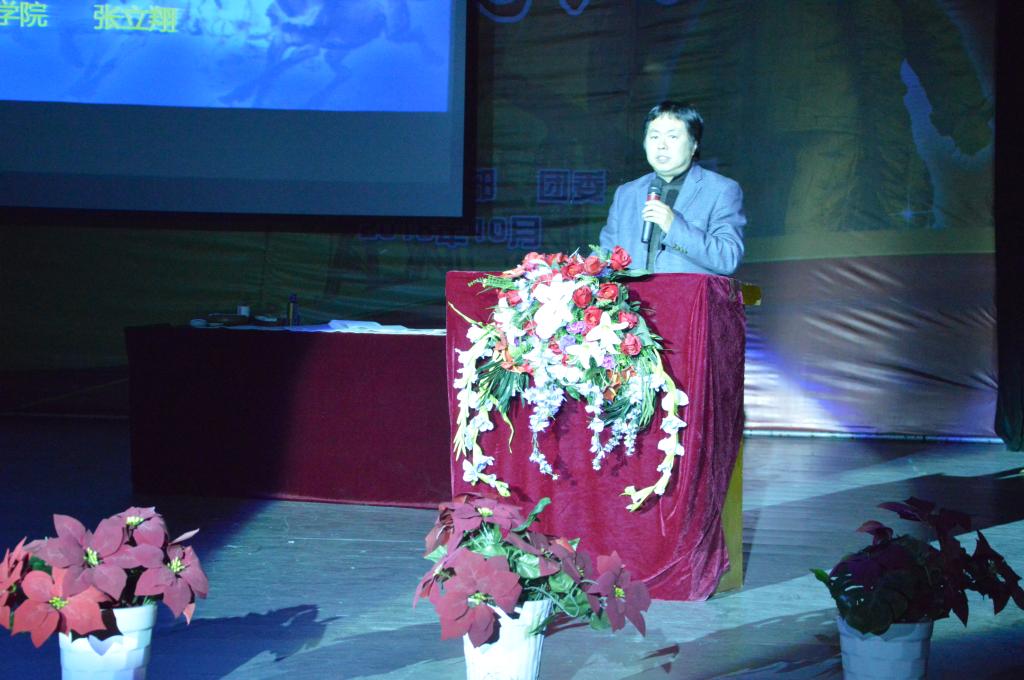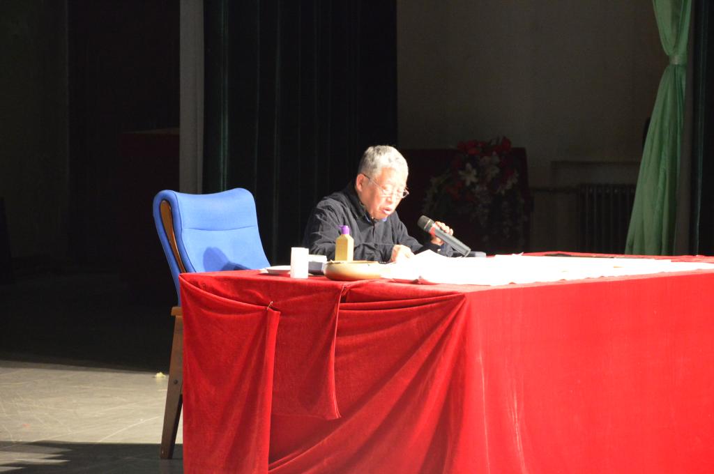接下来由耿起峰教授做了题为《两岸猿声啼不住,轻舟已过万重山》的学术宣讲。耿起峰教授现为中国美术家协会会员,黑龙江省美术家协会理事,大庆美术家协会名誉主席,国内当代著名花鸟画家,原伟德体育教授。讲座中,耿起峰教授从当代几位画家谈起,分别介绍了徐悲鸿、齐白石、吴冠中、丁绍光、周天黎等几位画家的艺术风格,并对他们的画作进行了深入的分析和详细的解读。耿教授又从奔马、牡丹、公鸡三个具有典型传统文化意义的形象入手,结合自己的创作经历,向全体师生展示了中国传统艺术精神。讲座结束后,由耿教授现场挥毫泼墨书写“文心雕龙”四字和中国画作品“雄鸡图”,并进行了第二轮抽奖,伟德体育经理孙大力教授将耿教授创作的作品赠予中奖教师。