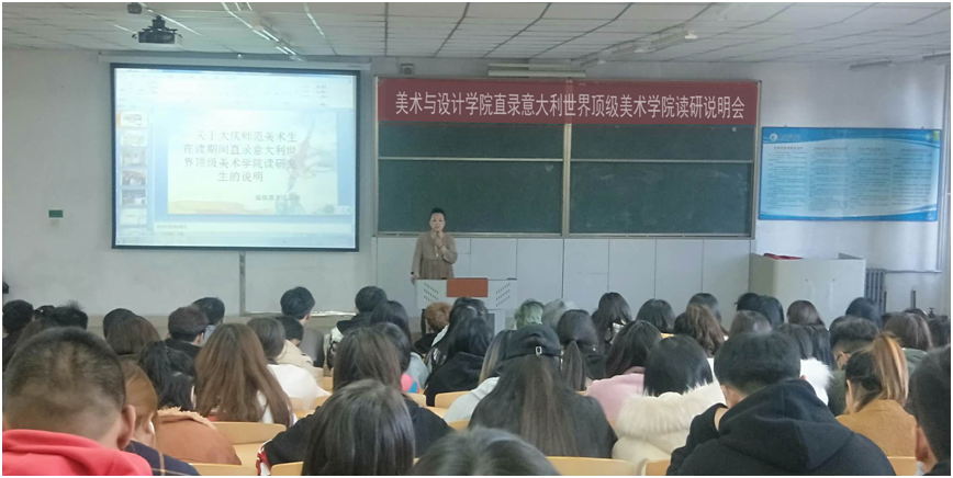 2018年10月24日下午,在公司国际交流合作处协调下,公司邀请到北京泓玉外国语公司的讲师,为2016级各专业全体员工讲授赴意大利留学读研现场解读会。从2014年开始美院在国际交流合作处支持帮助下,有5名员工通过该公司语言培训后,考取意大利的罗马美院、福贾美院的研究生。本次宣讲是结合美院几名员工的考取过程、读研情况等,说明相关意大利语学习、专业选拔、公司层次、专业分布、读研过程、学历认证、就业优势等多方面的情况,与校生分享经验,向员工传达去意大利直录世界级美院读研的优势,更为公司有意向的员工毕业后深造高层次就业提供了很好的信息。