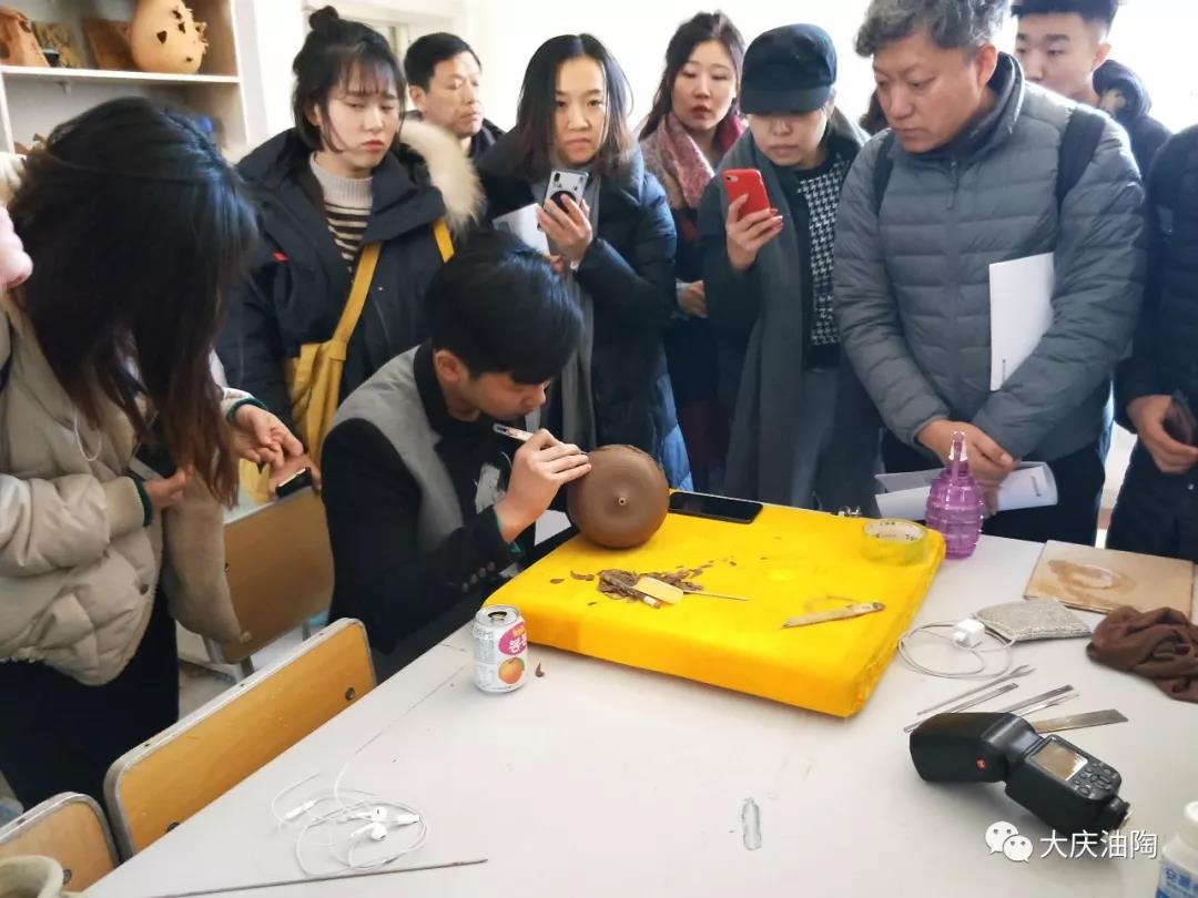 2019年2月22日,国家艺术基金资助项目“陶艺创作人才培养”培训班学员一行在哈师大艺术传媒公司经理王伟建先生带领下到公司油陶研究所参观访问。