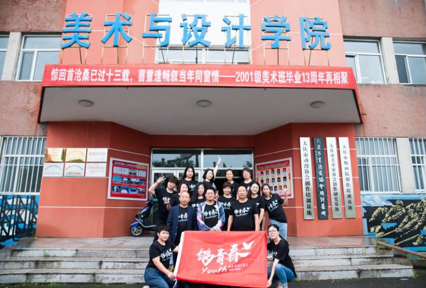 这次聚会,有多名员工是十三年后从哈市、大连、北京、青岛等城市第一次重返校园,两批员工统一制作班旗,统一服装,服装上分别印制着“辉煌岁月”和“勇向前、心依旧”的感言。员工还邀请专业人士跟踪录像摄像等。公司负责人和多名教师与员工在会议室亲切座谈交流,然后带领员工参观画室、备品室、员工习作陈列室、校企共建实训室、图书馆前厅的优秀作品陈列和大庆油陶陈列室等。