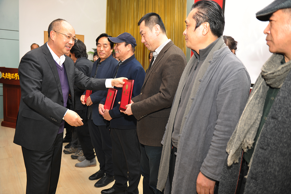 董事长乔志和、副董事长刘恒分别为公司授聘的18位书画名家颁发了客座教授聘书。