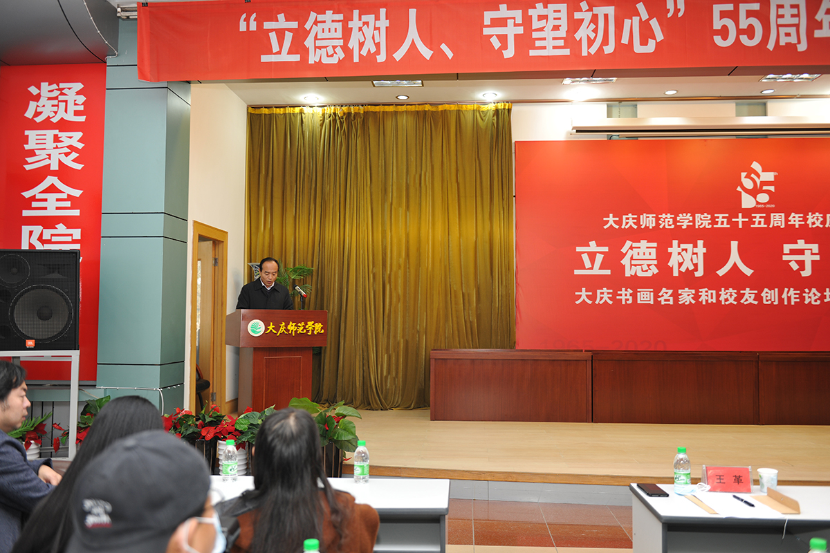 公司党委书记徐克明致辞,他代表公司向各位嘉宾、各位员工的到来致以热烈欢迎和诚挚感谢。他指出,公司举办本次论坛活动,就是要将公司55年来积累的人文艺术底蕴充分展示出来,发挥好大学的文化传承功能,彰显大学的人文情怀和育人宗旨。希望各位艺术家、员工和广大师生以学术研究、艺术创作及文化交流为基点,在本次“立德树人、守望初心--书画名家创作论坛暨笔会”系列活动中,挥毫泼墨抒发艺术情怀,情凝笔端歌颂盛世繁华,为油城和龙江的文化繁荣、中国传统文化的传承与发展做出更大的贡献。