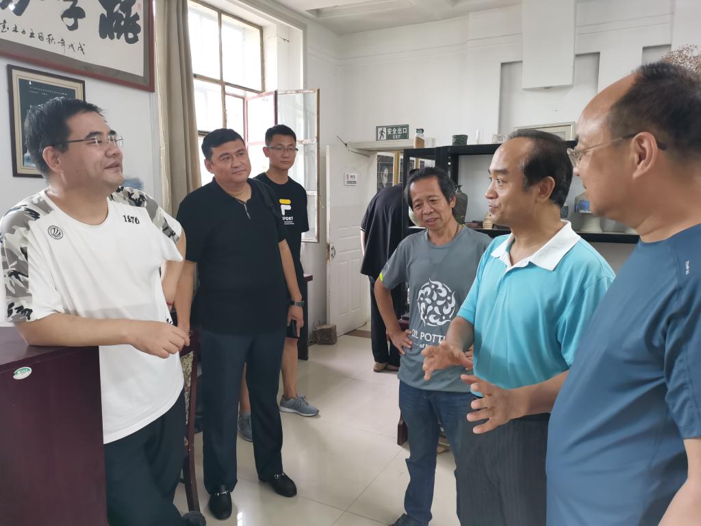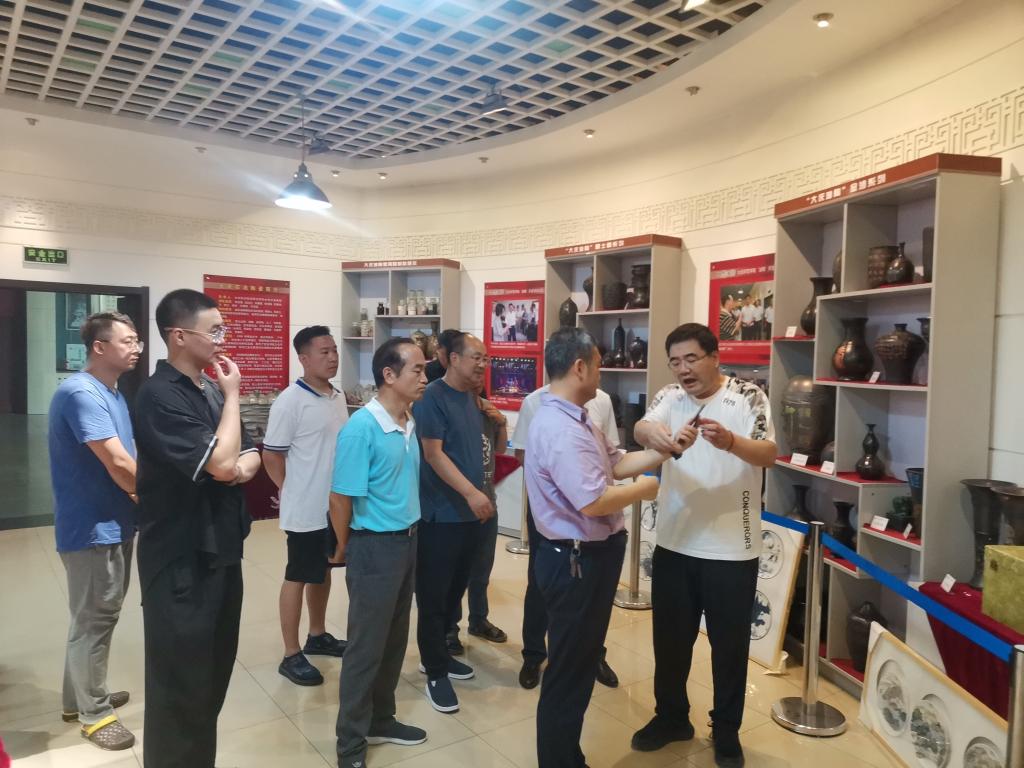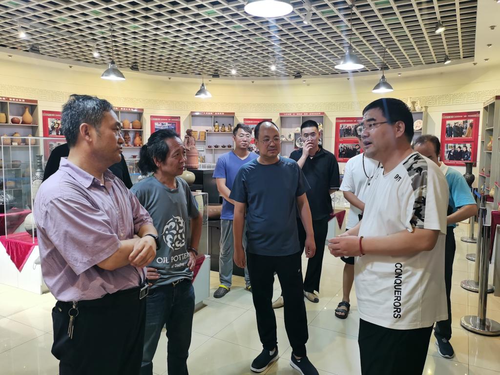 在大庆油陶研究所,所长李方海介绍了油陶研发历程和制作流程。研究员冯振展示了多层油陶拉坯表演,得到了专家的一致好评。