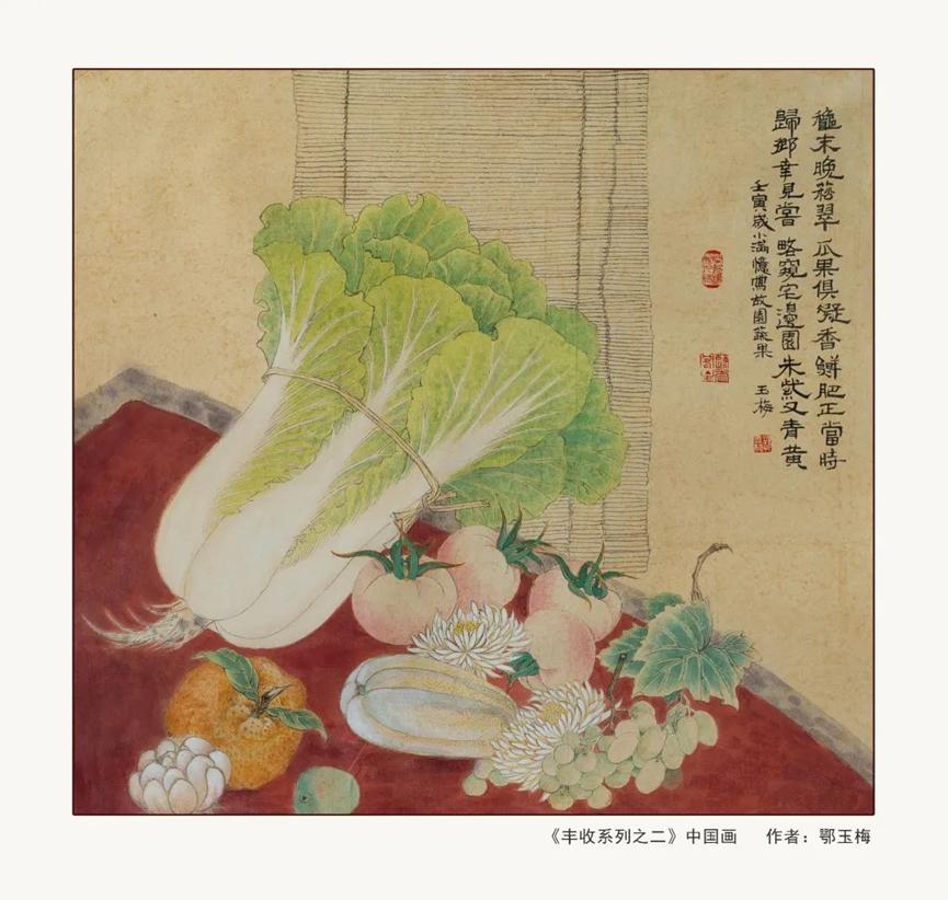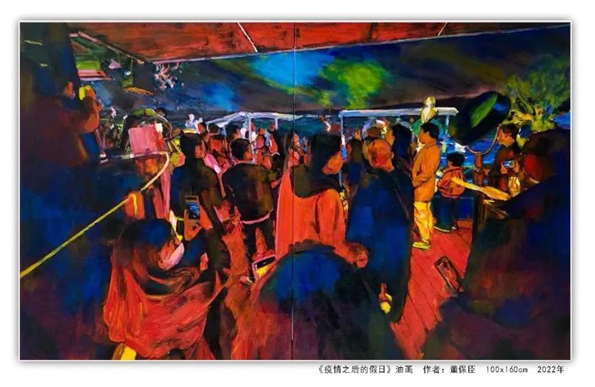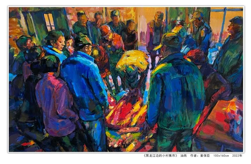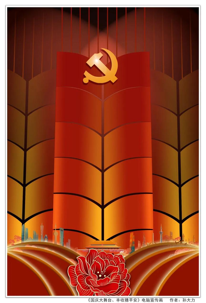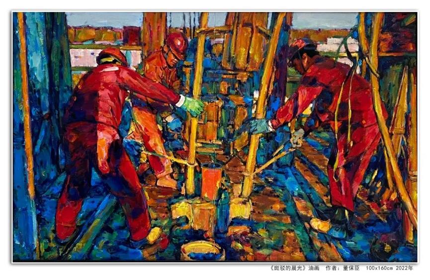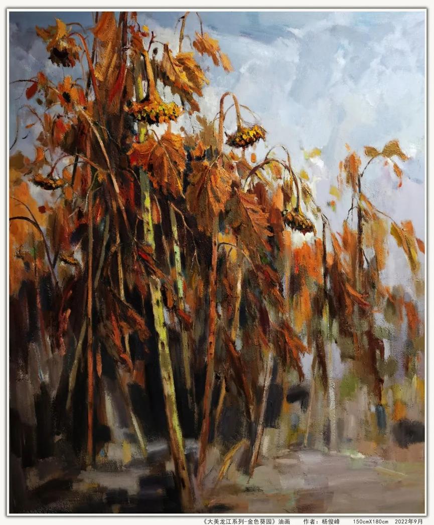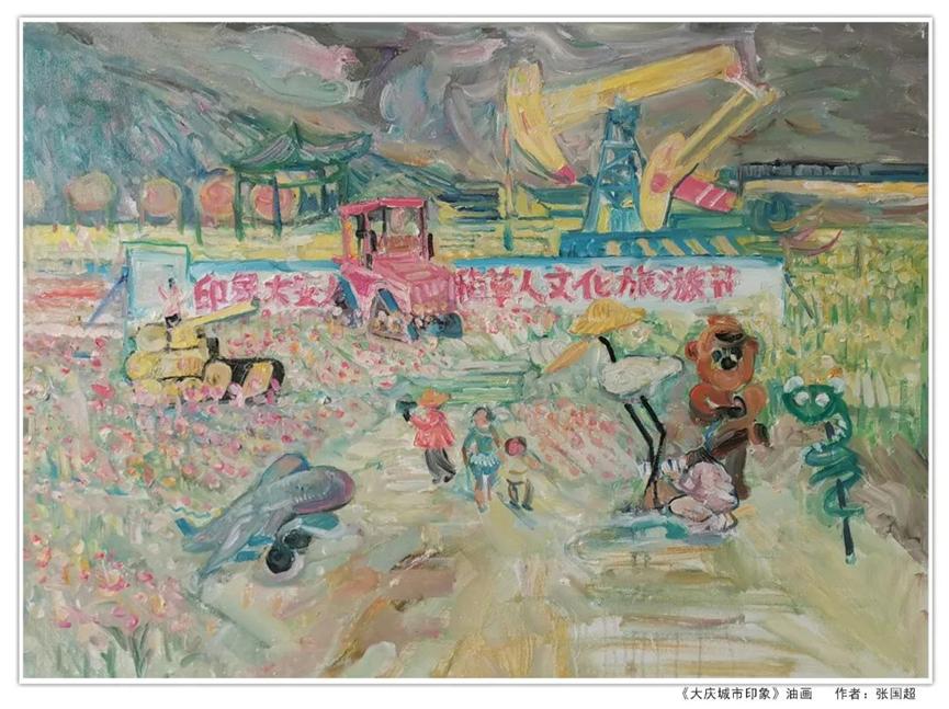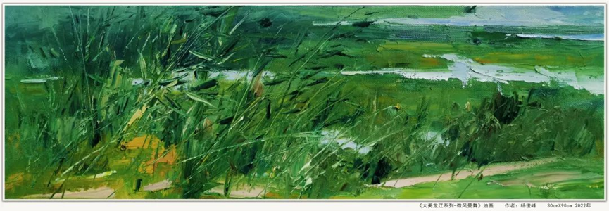 作品运用现实主义等多种表现手法,通过象征联想等创作手段,笔墨挥洒,色彩浓烈,再现了大美江山、北方风情,描绘了大庆湿地风光、油田会战功臣以及井场奋战的场景和农家果粮丰收等题材内容,表达了美院教师庆祝国庆和对党的二十大召开的期盼。