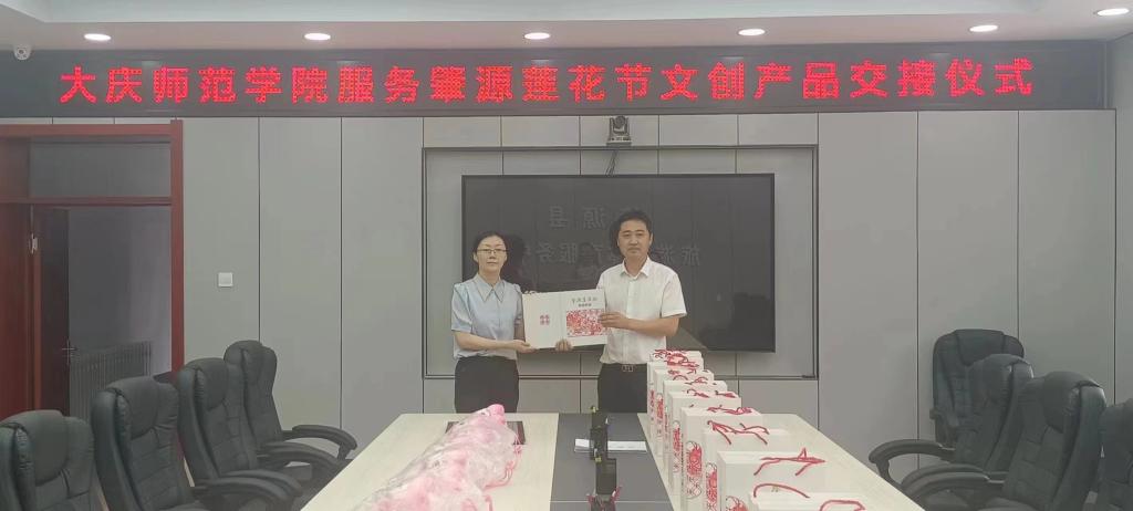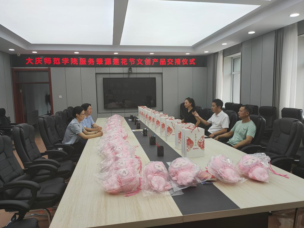 2023年7月18日,伟德体育派出五人赴肇源县,参加“莲逢盛世 相约肇源”2023肇源县莲花节。莲花节开幕前肇源县举办了大师范公司服务肇源莲花节文创产品交接仪式,张立翔和孙琦将公司为莲花节设计的吉祥物“肇园园”和莲蓬装饰艺术品交给肇源县旅游和体育服务中心主任王嗣玺。本次吉祥物“肇园园”等文创产品设计和制作时间紧,指导教师耿文男亲自赴厂家指导设计,保证了设计吉祥物如期交付,为公司在设计创意方面的深度研究与实践,具有积极的现实意义。