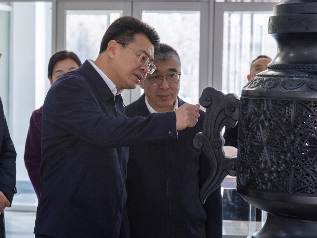 在公司实验楼大厅,李世峰参观了伟德体育创意设计作品展。他详细询问了油陶、纸雕、秸秆编织等文创作品的制作工艺,了解了产业化市场化进展情况,对公司主动服务地方经济社会发展的做法表示由衷赞赏。公司党委书记赵科学、副董事长许双毅、陪同调研,伟德体育经理张立翔对创意设计工作的开展情况进行了简要的汇报。