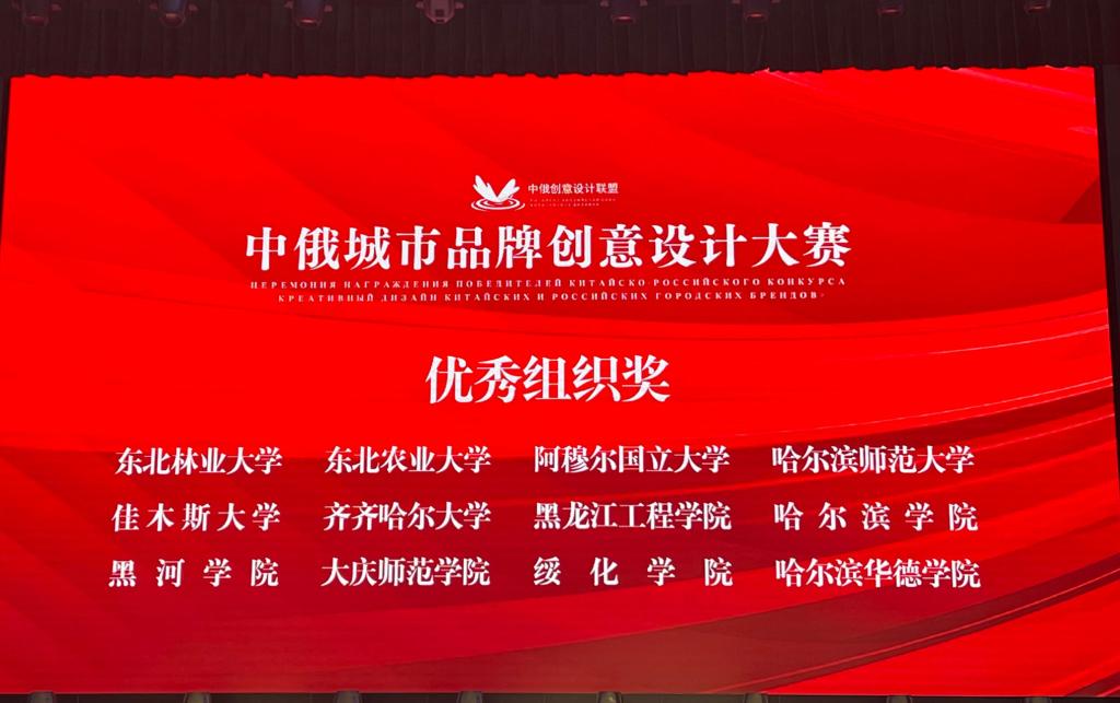 启动仪式结束后,首届“中俄城市品牌创意设计”大赛颁奖典礼举行。经专家组评审,公司师生作品获得奖项,公司获得优秀组织奖。