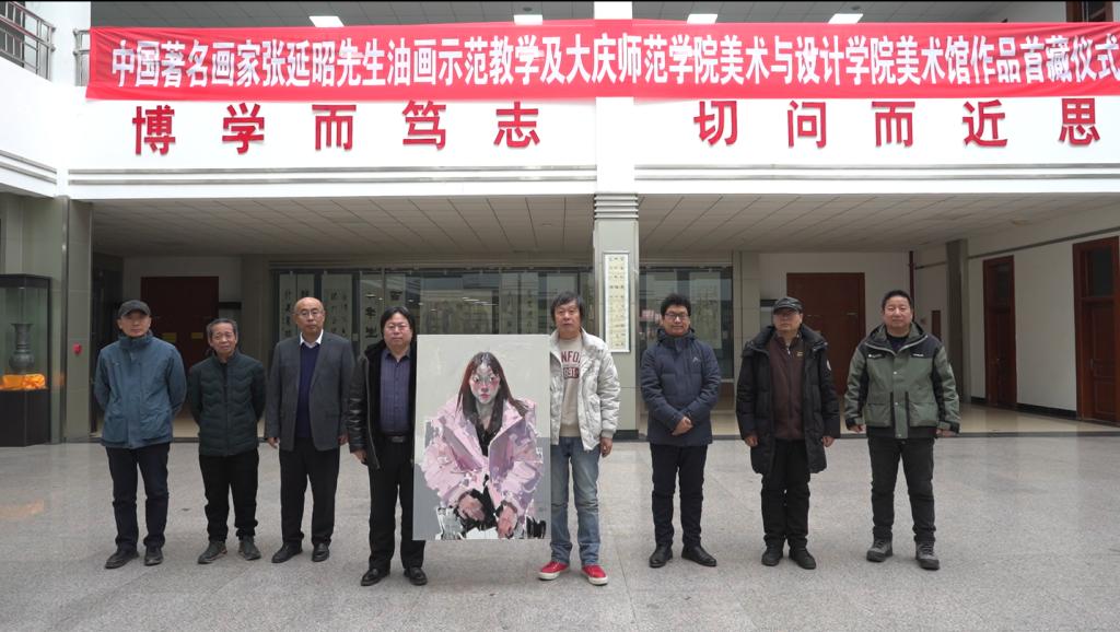 伟德体育邀请中国著名画家张延昭先生进行了油画示范教学,现场示范创作油画作品《油城花季》,示范教学活动后,张延昭先生将作品无偿捐赠给伟德体育美术馆,张立翔接受了作品捐赠。