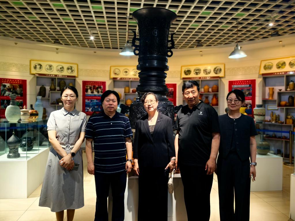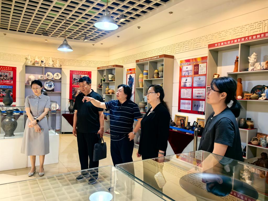 韦敏芳一行先后参观了公司大庆油陶陈列室、美术馆及创意设计作品展。来宾们对公司传承非遗文化、创新工艺设计成果,以及员工的创新思维和设计能力给予高度评示赞赏,并表示伟德体育的作品兼具艺术性与实用性,展现了扎实的专业功底和独特的创意视角,为校企合作提供了广阔空间。