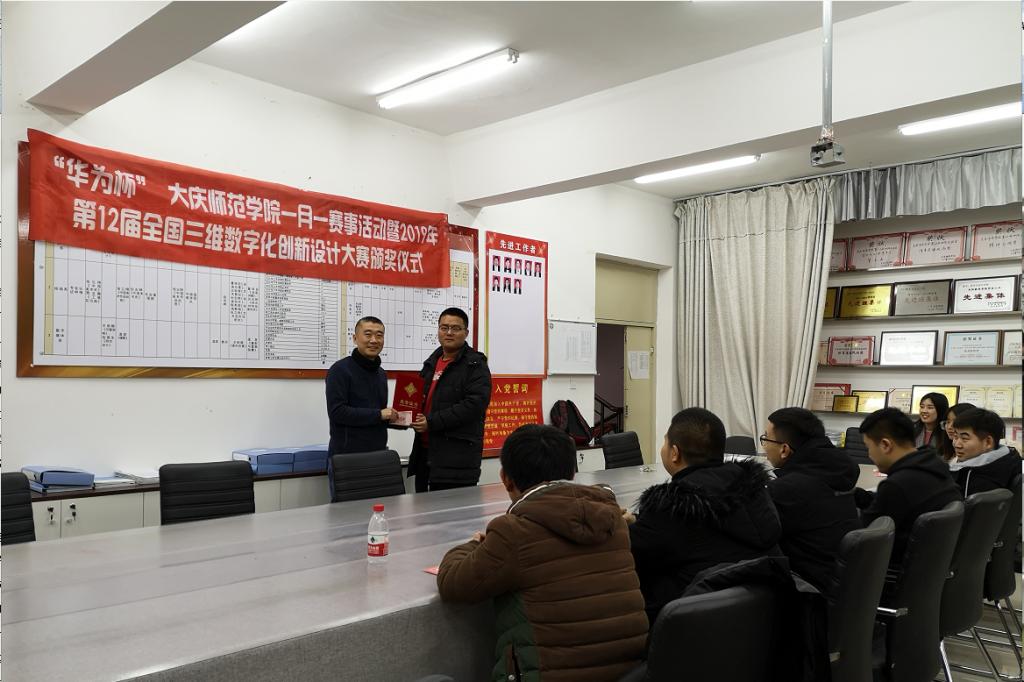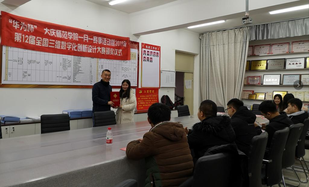 2019年12月11日,伟德体育“华为杯”全国三维数字化创新设计大赛校赛在系楼会议室举行了颁奖活动,伟德体育副经理陆津、全体参赛队员、指导教师参加活动。