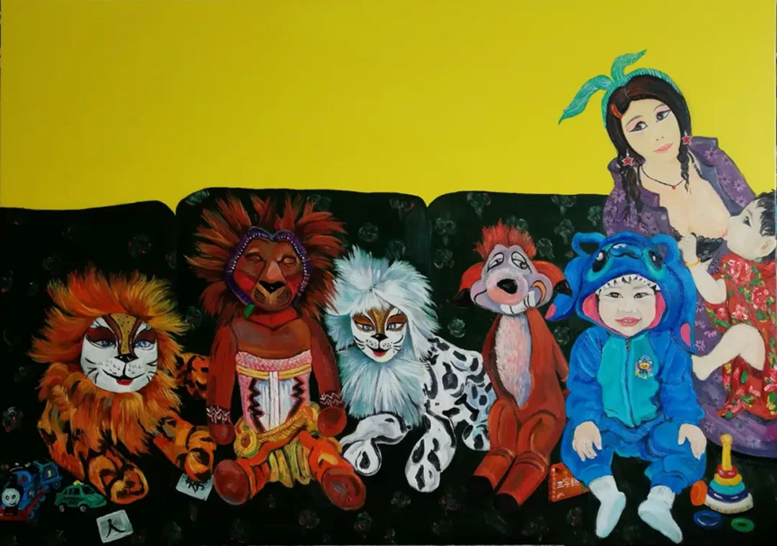 《二胎时代—— 我们的快乐你不懂》170×120cm油画2019