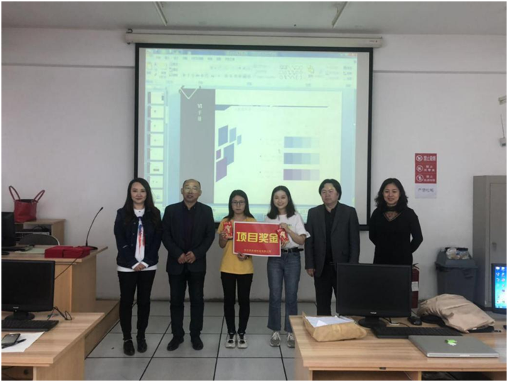 汇报会上,参与项目设计五个小组同学分别对设计方案进行展示并做了设计阐释。最终,第一组的VI项目,第二组的网页项目被达源科技有限公司选定。经理孙大力和副经理张立翔共同为获奖组组长颁发项目奖金,品源科技公司项目总监赵珊和视觉传达专业主任为此次活动中表现优异的个人颁发“优秀实习生”奖状。