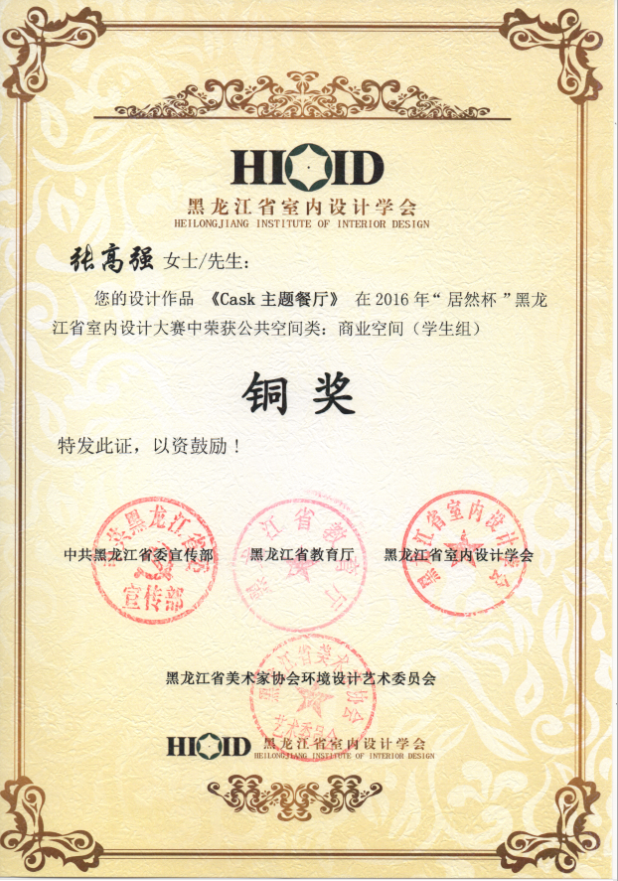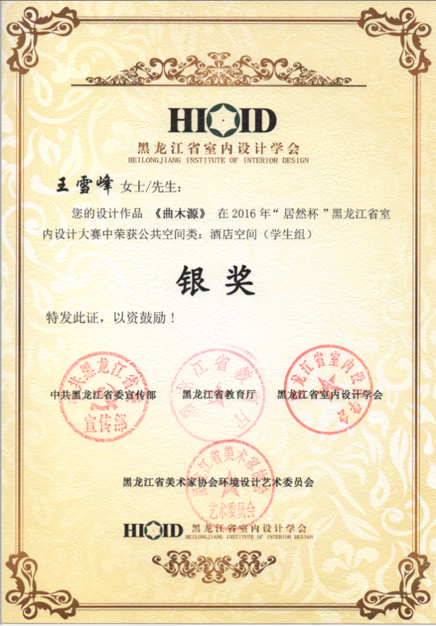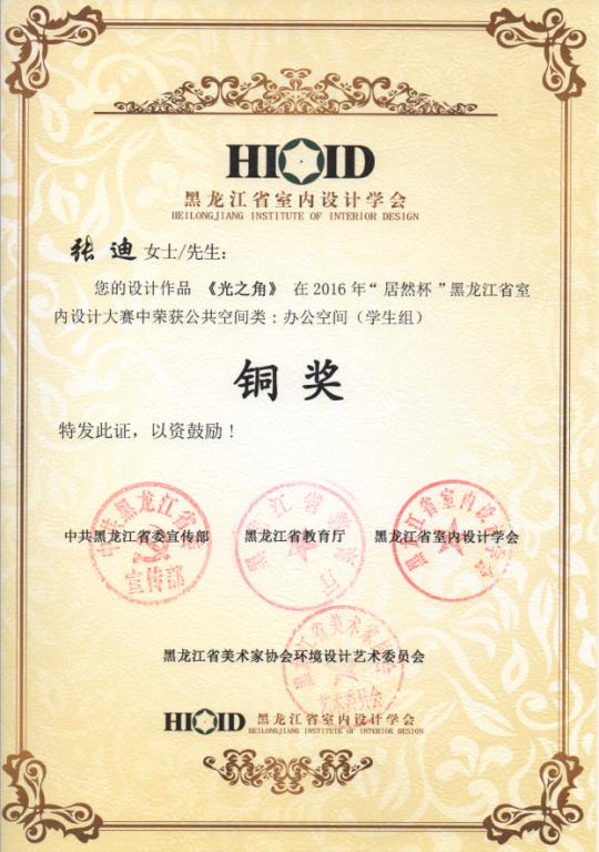 由中共黑龙江省委宣传部、黑龙江省教育厅、黑龙江省室内设计学会、黑龙江省美术家协会环境设计艺术委员会共同主办“居然之家黑龙江分公司”冠名的《2016“居然杯”黑龙江省室内设计大赛》,