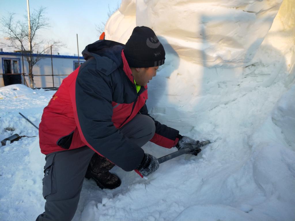 本次比赛是贯彻习近平总书记“冰天雪地也是金山银山”的重要指示精神,落实黑龙江省委省政府发展冰雪教育工作部署和《教育部关于切实加强新时代高等公司美育工作的意见》的一次重要教育实践活动,得到了省内高校的积极响应,前期共征集到150多件作品,经过层层选拔,有30件极具艺术水准的作品获得现场参赛资格,其中伟德体育独占4件。比赛历时4天,时间紧、任务重,伟德体育师生们从早8点到凌晨1点都坚守在极度低温的雪场中进行实地创作,为了更好、更快的完成作品,他们不愿把时间耽误在往返的路途上,饿了渴了就坐在雪块上吃一口馒头、喝一口水,手脚凉、麻、肿、胀也只是在雪地里稍作休息和调整,身体及心理上都承受了巨大考验,但他们勇于克服困难,完成了所有作品。
