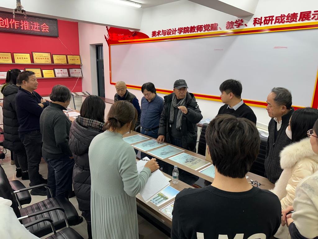 陈教授针对20余幅作品进行观摩点评,就主题立意、画面构图、表现技法等方面存在的问题与教师们展开深入剖析和交流,就形式与内容的统一性,画面局部与整体节奏关系,主题立意如何由小见大等问题,提出了进一步打磨提高的建设性意见。陈教授希望参赛教师将重点选题、重点创作抓在手上,组成参展团队,全力孵化一批精品力作,力争取得优异。