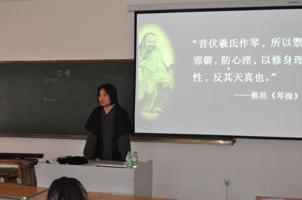在两个小时的讲座中,清平老师从古琴的历史、种类、形制、演奏方式等方面内容进行了讲解,从诗教、礼教谈到乐教,通过对乐教、诗教的理解,更好的达到对礼教的学习,最终对中国传统文化的学习。讲座过程中,清平老师为师生们演奏了《鸥鹭忘机》等琴曲,此曲曲情充满生趣和怡然自得,和谐的琴声泛起,引导人们的思维赶往美丽的大自然,心境也随之而豁然开朗。乐曲表现了真、善、美的精神世界,使听者在当下的环境里慢慢体会“躁心平、奢心释、竞心忘”的精神。