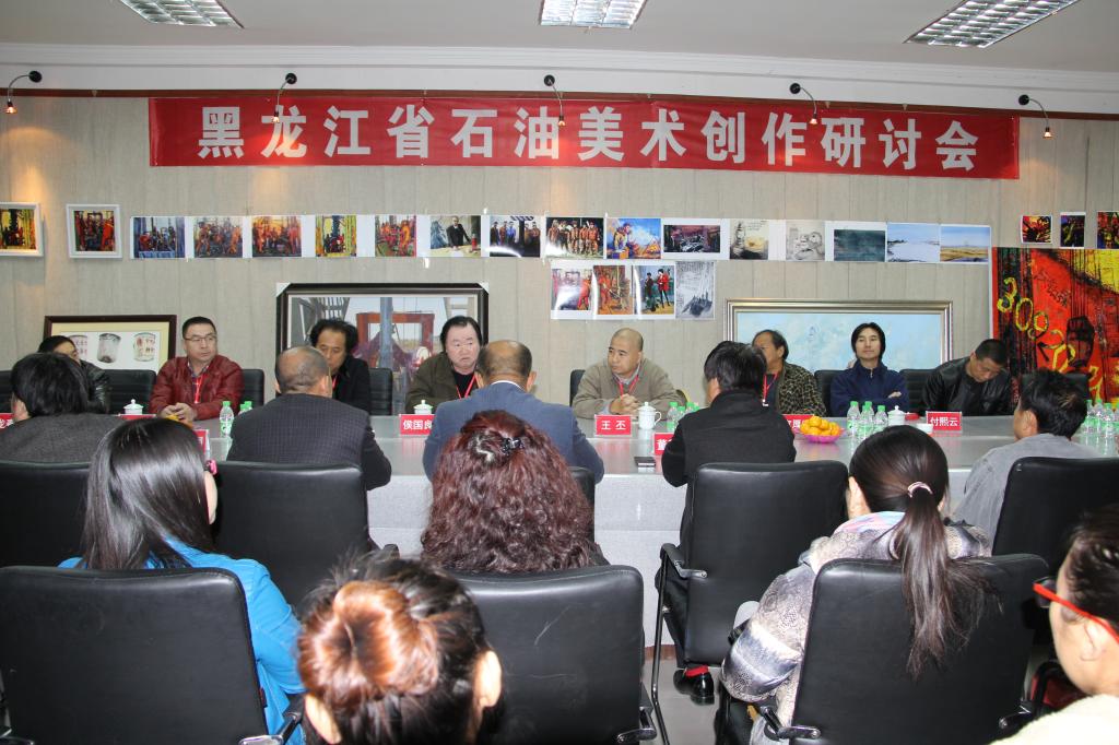 2015年10月18日,按照Bevictor伟德官网科研工作部署,更好的完成《新时期大庆精神铁人精神传播载体的创新与实践》油田主题创作项目,在省美术家协会部署下,伟德体育在艺术实验楼召开了“黑龙江省石油美术创作研讨会”。