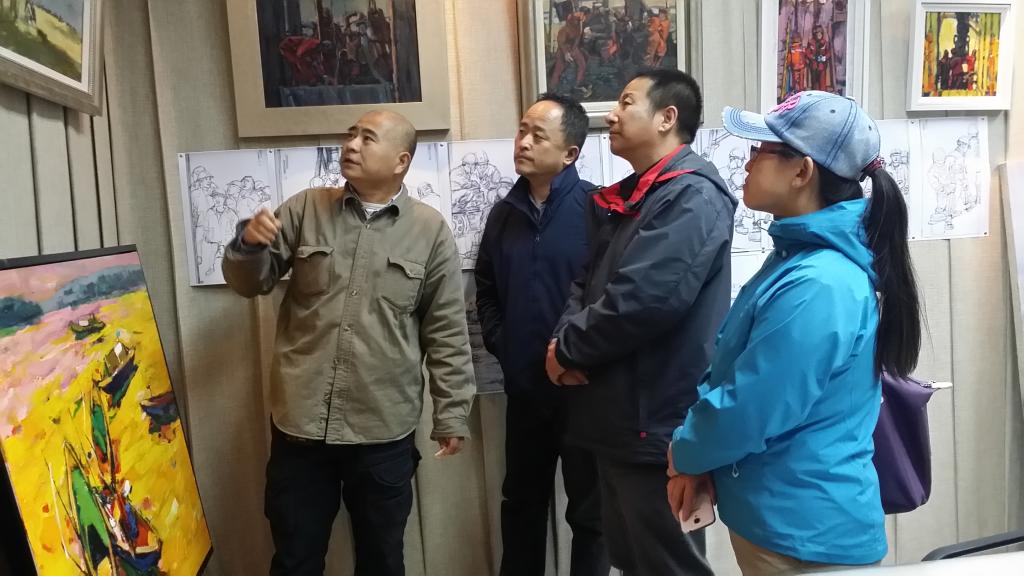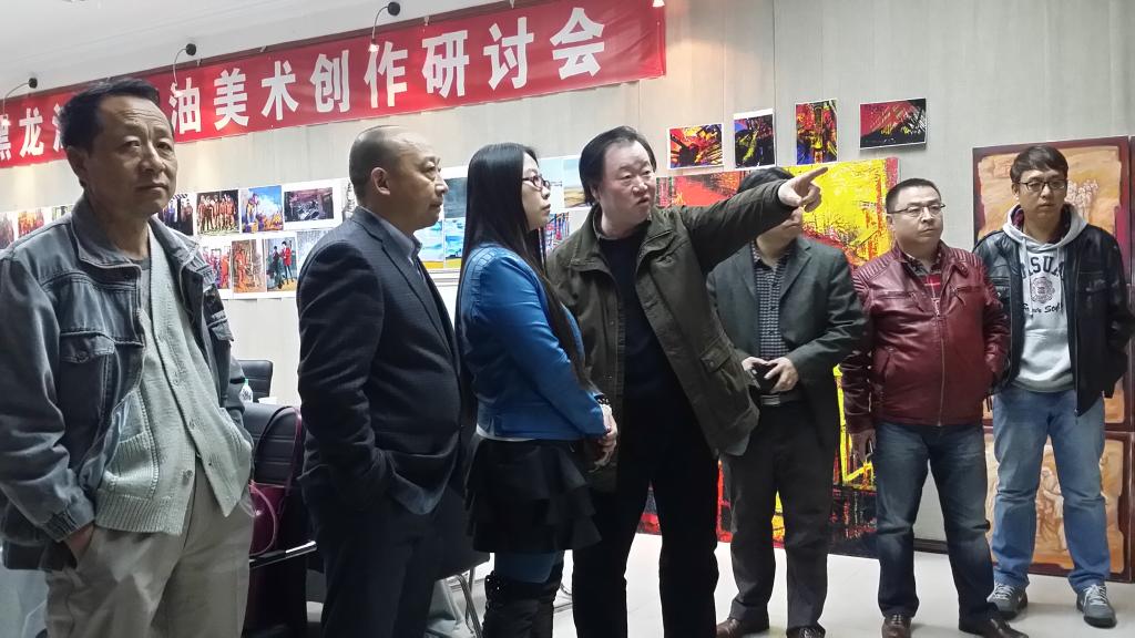 18日下午,大庆文联主席、大庆市美术家协会主席柳庄做了指导发言。教师代表董保臣、杨俊峰、孙志晔做了艺术创作体会发言。各位专家进行集中讲评,并给予重点指导分析。随后专家与公司教师及大庆本土画家进行了长时间单独交流。